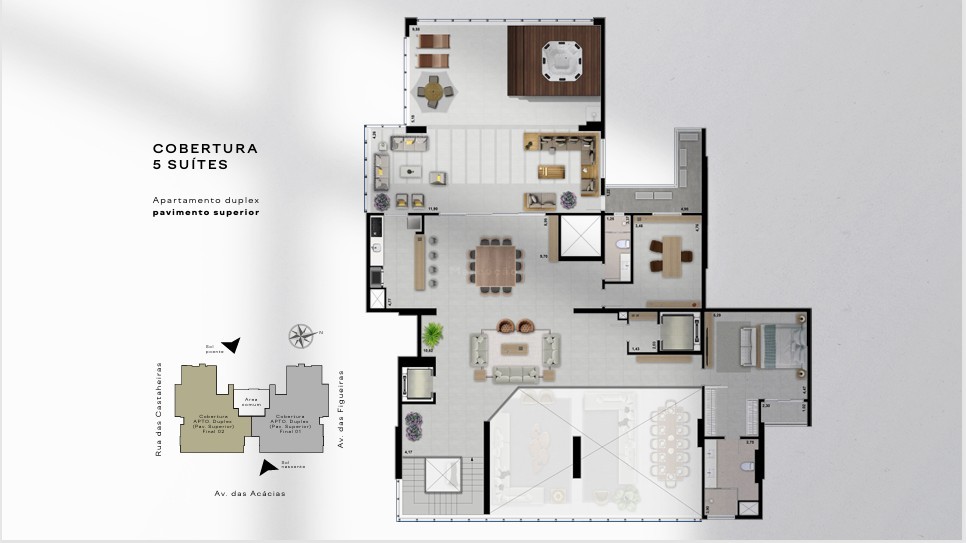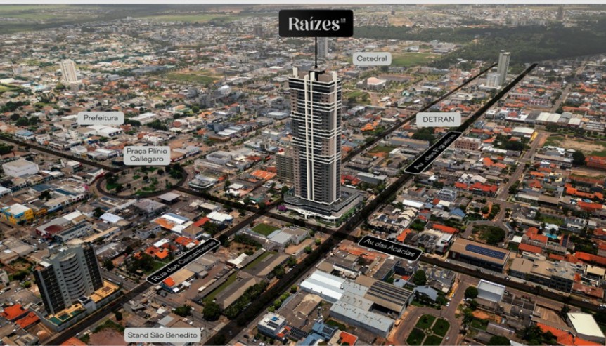 RAÍZES — UM NOVO MARCO DE LUXO, PRIVACIDADE E SEGURANÇA EM SINOP Localizado no centro de Sinop, o Raízes foi concebido para um público exigente, que valoriza exclusividade, discrição e alto padrão em sua forma mais refinada. Com arquitetura contemporânea e poucas unidades por pavimento, o empreendimento oferece privacidade real, aliada a um projeto de segurança e controle de acessos que preserva a tranquilidade dos moradores. Os apartamentos contam com metragens generosas e layouts inteligentes: 194 m² e 197 m², com 3, 4 ou 5 suítes, Penthouses de 387 m² e 428 m², e uma cobertura exclusiva de 766 m², símbolo máximo de sofisticação, espaço e distinção. A infraestrutura de lazer ocupa 4.000 m² cuidadosamente planejados, criando um verdadeiro refúgio urbano — onde bem-estar, convivência e descanso coexistem com conforto e elegância. Garagens amplas com 3, 5 ou até 8 vagas completam a experiência, atendendo a um estilo de vida que valoriza praticidade sem abrir mão do luxo. Raízes não é apenas um endereço. É a materialização de um novo patamar de moradia em Sinop — exclusivo, seguro e definitivo.
